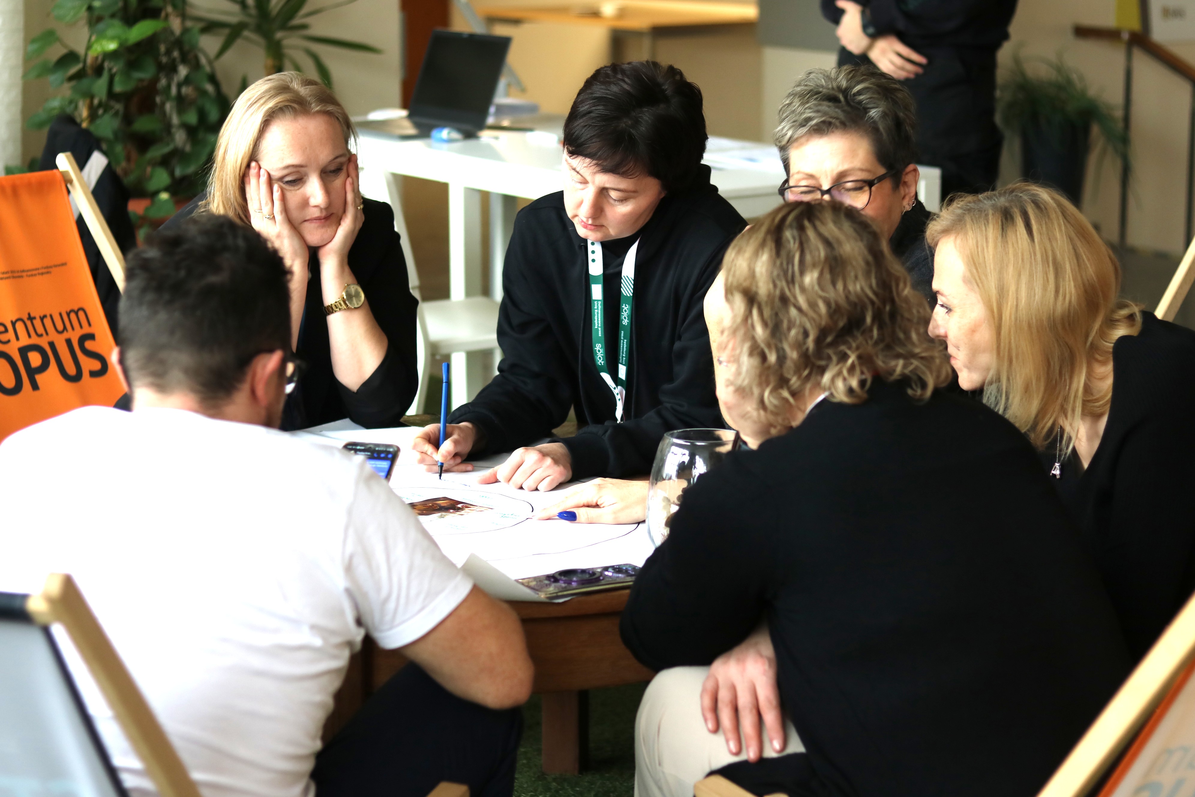 Uczestniczki i uczestnicy zostali podzieleni na 6 grup w warsztatach poświęconych narzędziom pomagającym efektywnie gospodarować zasobami i wdrażać rozwiązania oparte na zasadach gospodarki cyrkularnej. Umożliwiło im to praktyczne zapoznanie się z możliwościami, jakie oferuje ten model działania.