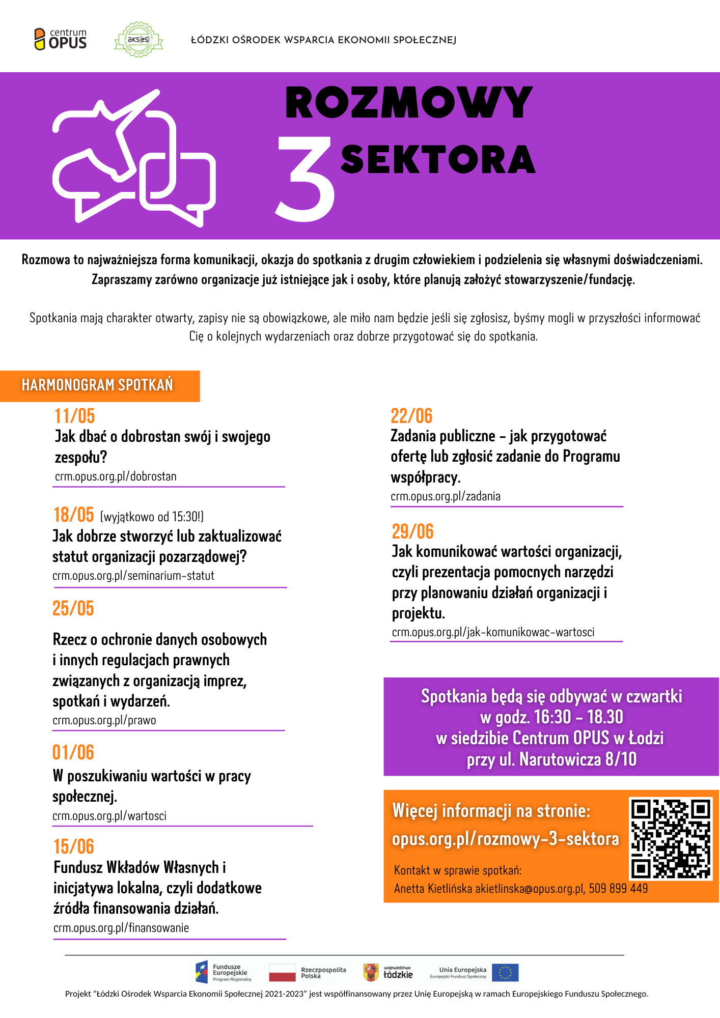 Więcej informacji nt. spotkań udziela: Anetta Kietlińska akietlinska@opus.org.pl, 509 899 449