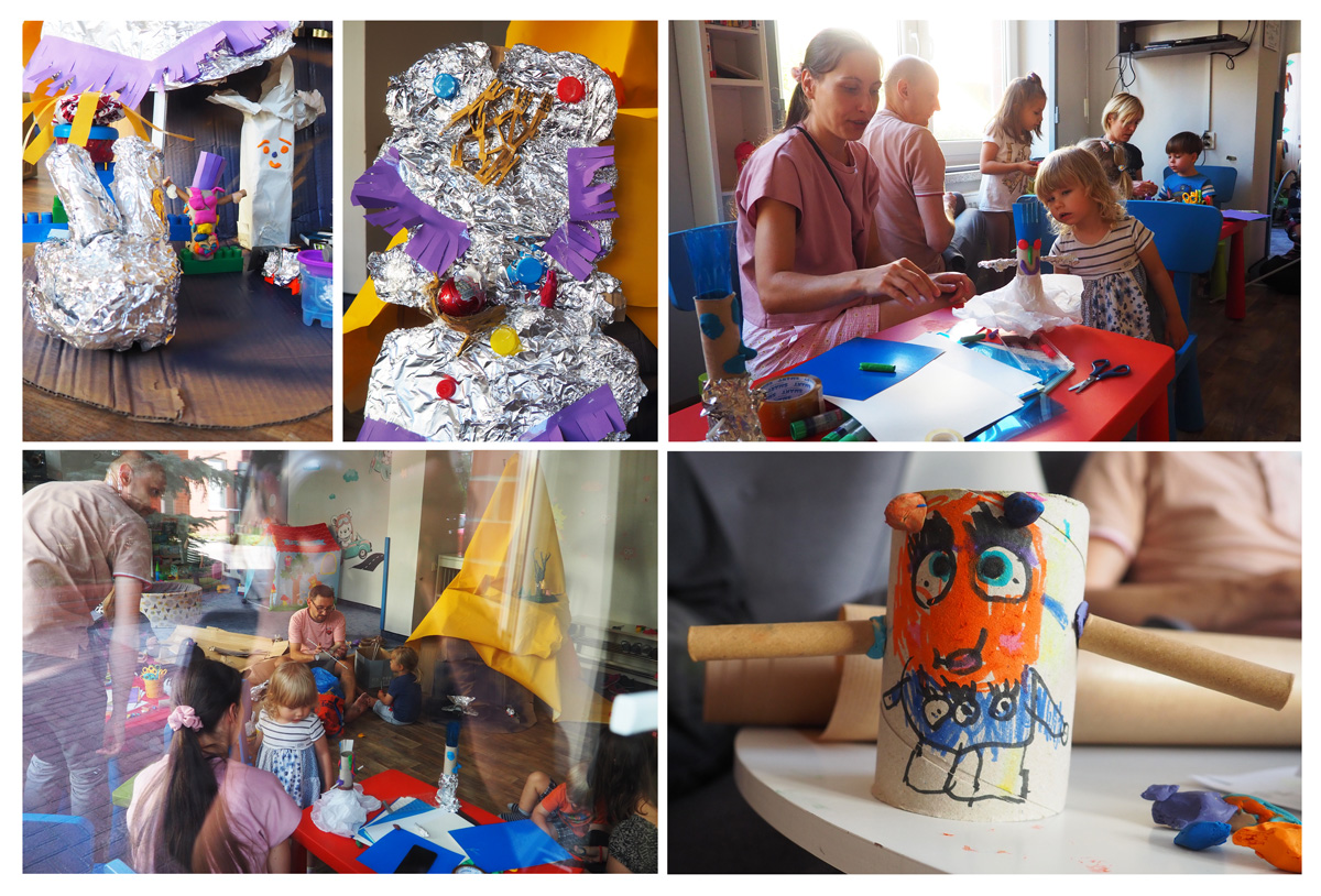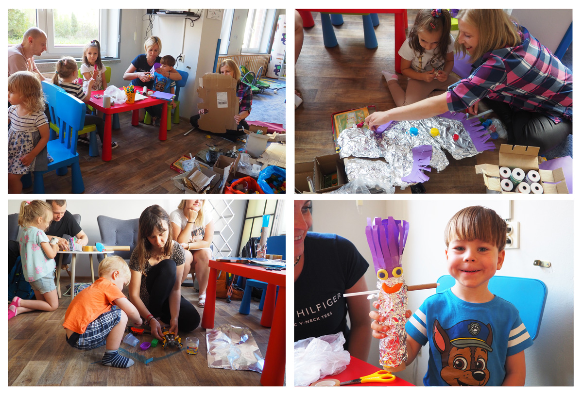 Wiedzą o tym także uczestnicy naszych warsztatów. Ostatnio w Bibliotece na Ketlinga 21 udowodniliśmy, że "zbędne rzeczy" mogą służyć do dalszej twórczej zabawy. Powstała z nich całkiem nowa planeta i jej fantastyczni mieszkańcy (na zdjęciach).